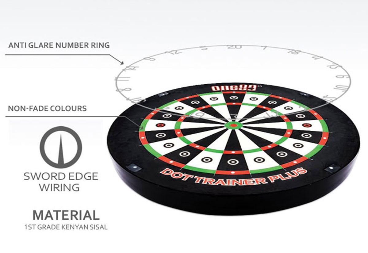 Das Trainingsboard in Top Qualität für den ambitionierten Dartspieler. Sword-Edge-Draht-Konstruktion, Kenianisches Sisal für lange Haltbarkeit, Krampenfreies Bulls-Eye, nicht reflektierender Zahlenring. Durch die Punkte (Dots) trainiert man das zielgenauere Treffen der Zahlenfelder.