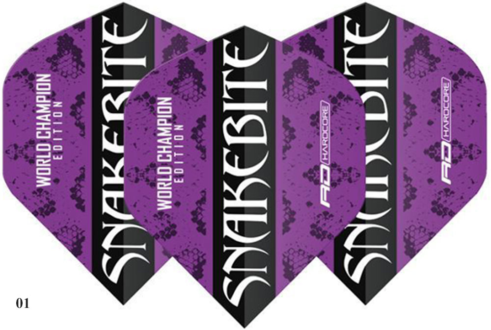 100 Micron Flights mit typischem "Snakebite" Druck, passend zu den Peter Wright Darts.
