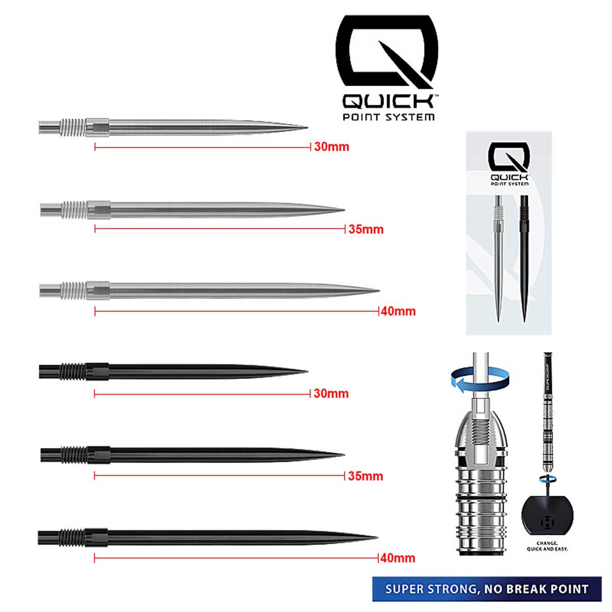 Mit dem einfachen Werkzeug, das jedem Quick Point Dart beiliegt, können Sie Spitzenlängen oder -arten in Sekundenschnelle wechseln – ganz unkompliziert und ohne Ausfallzeiten.