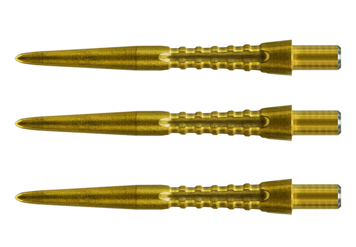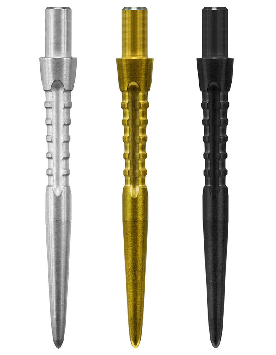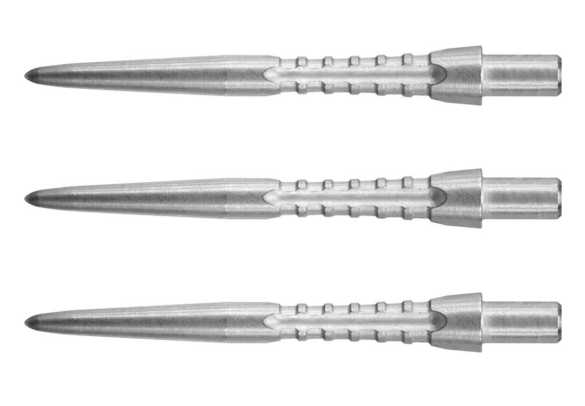 Das sind die Spitzen, die viele Target Profidarter nutzen. Die Spitzen sind mit einer Grip-Zone und einer Längsrille ausgestattet und mit einer Titanium-Nitrit-Beschichtung versehen.Nur in 26mm.