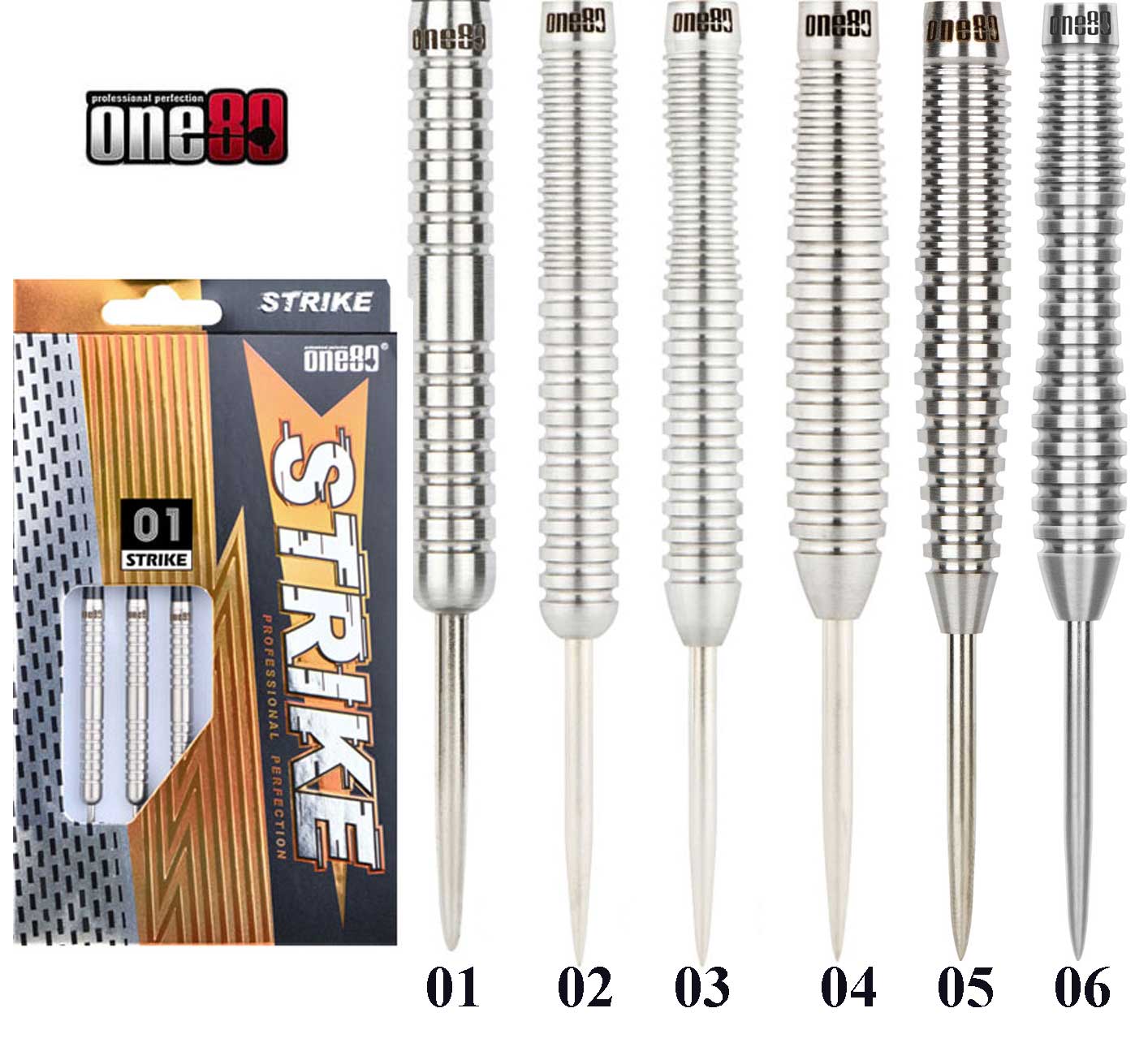 Diesen günstigen Dart von One80 gibt es in 6 verschiedenen Barrel-Formen. Er hat einen 80%igen Tungsten Anteil und ist optimal für Beginner und Gelegenheits-Darter.