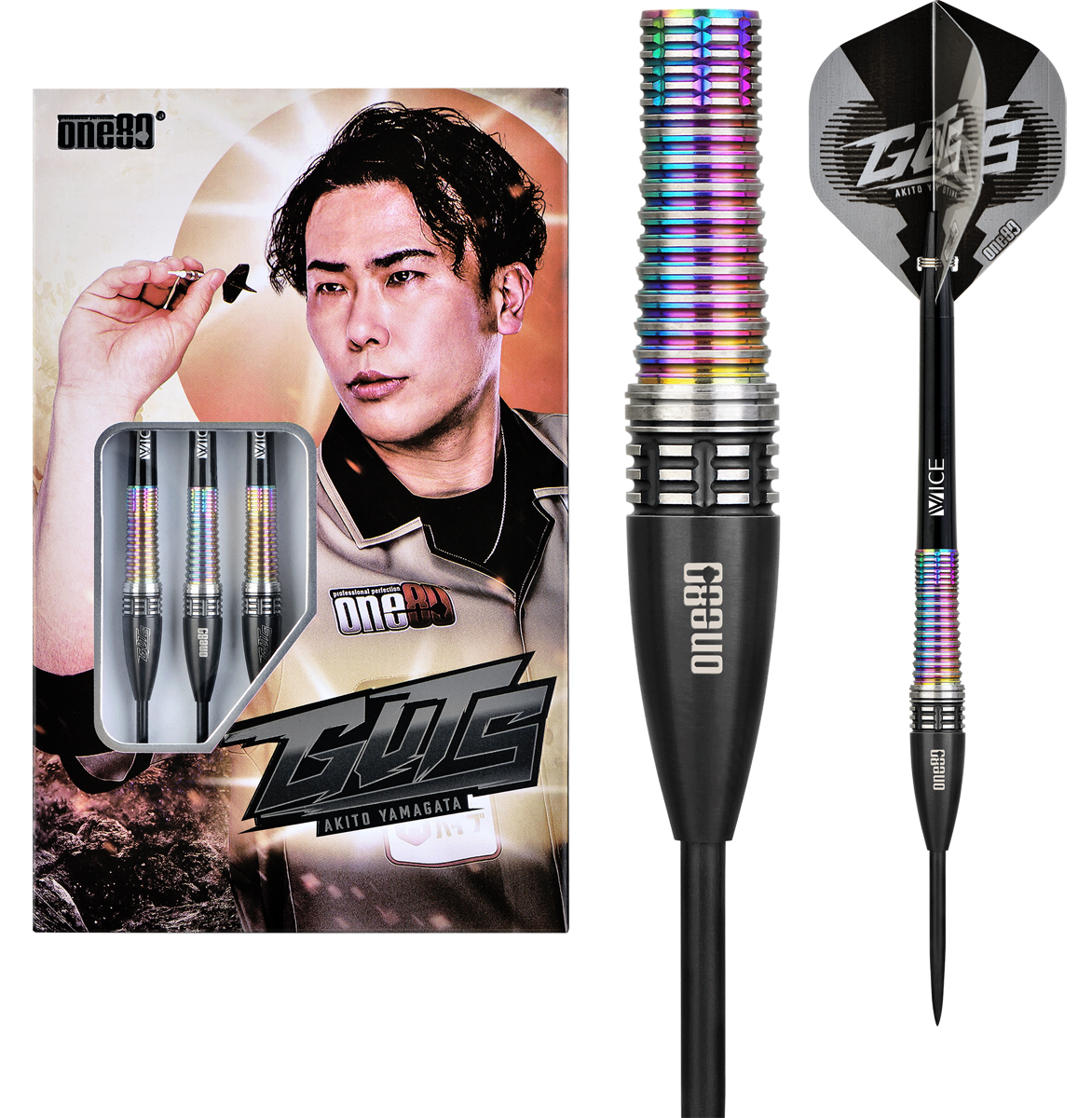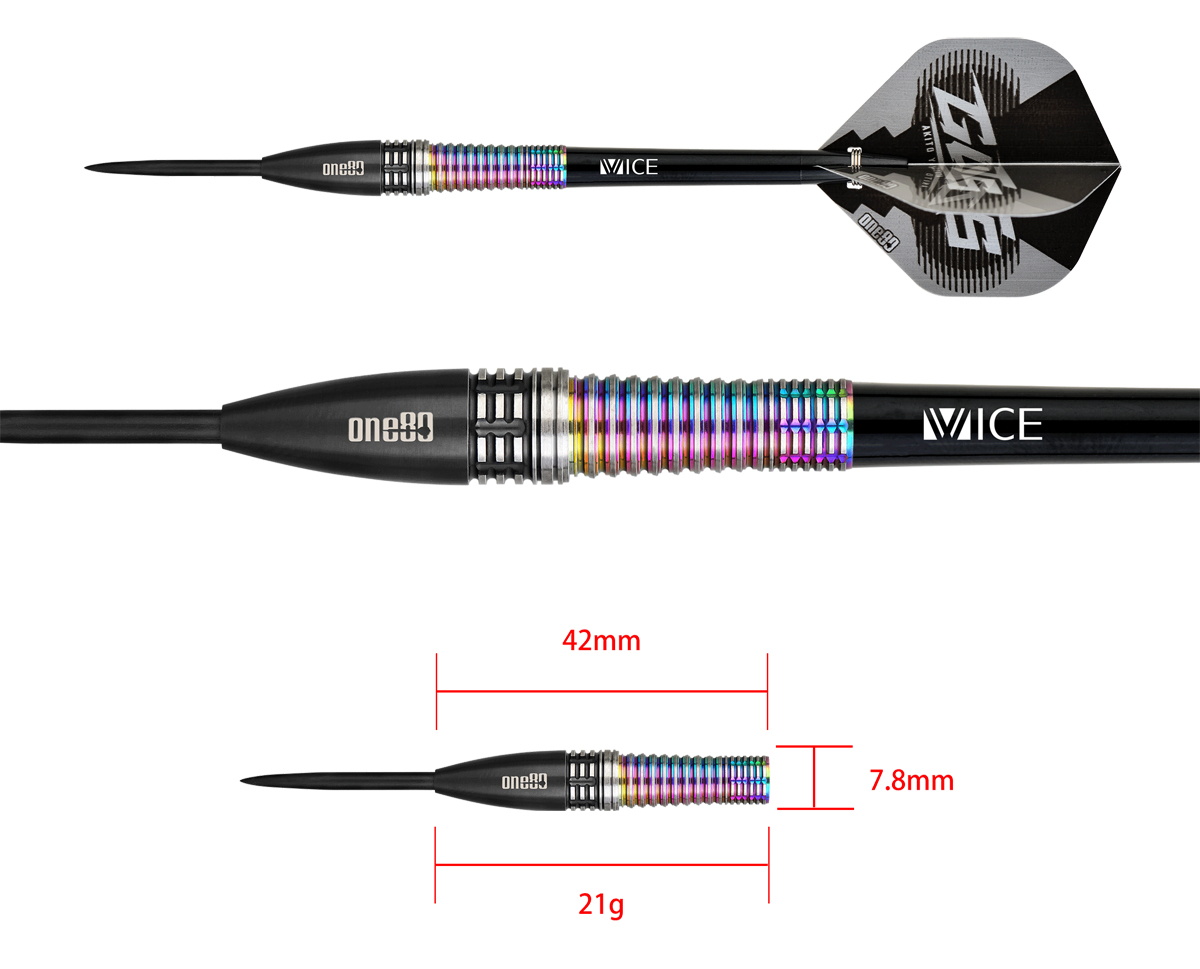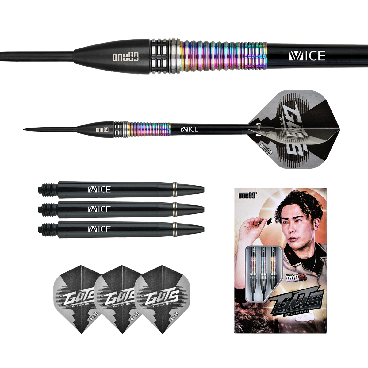 Dieser 90% VHD Tungsten Dart von "Guts" ist leicht Frontlastig, hat einen Ring-Grip im Rainbow Feld und eine glatte, schwarze Nase.Diesen Dart gibt es nur in 21 Gramm und ist auch als Softdart erhältlich.