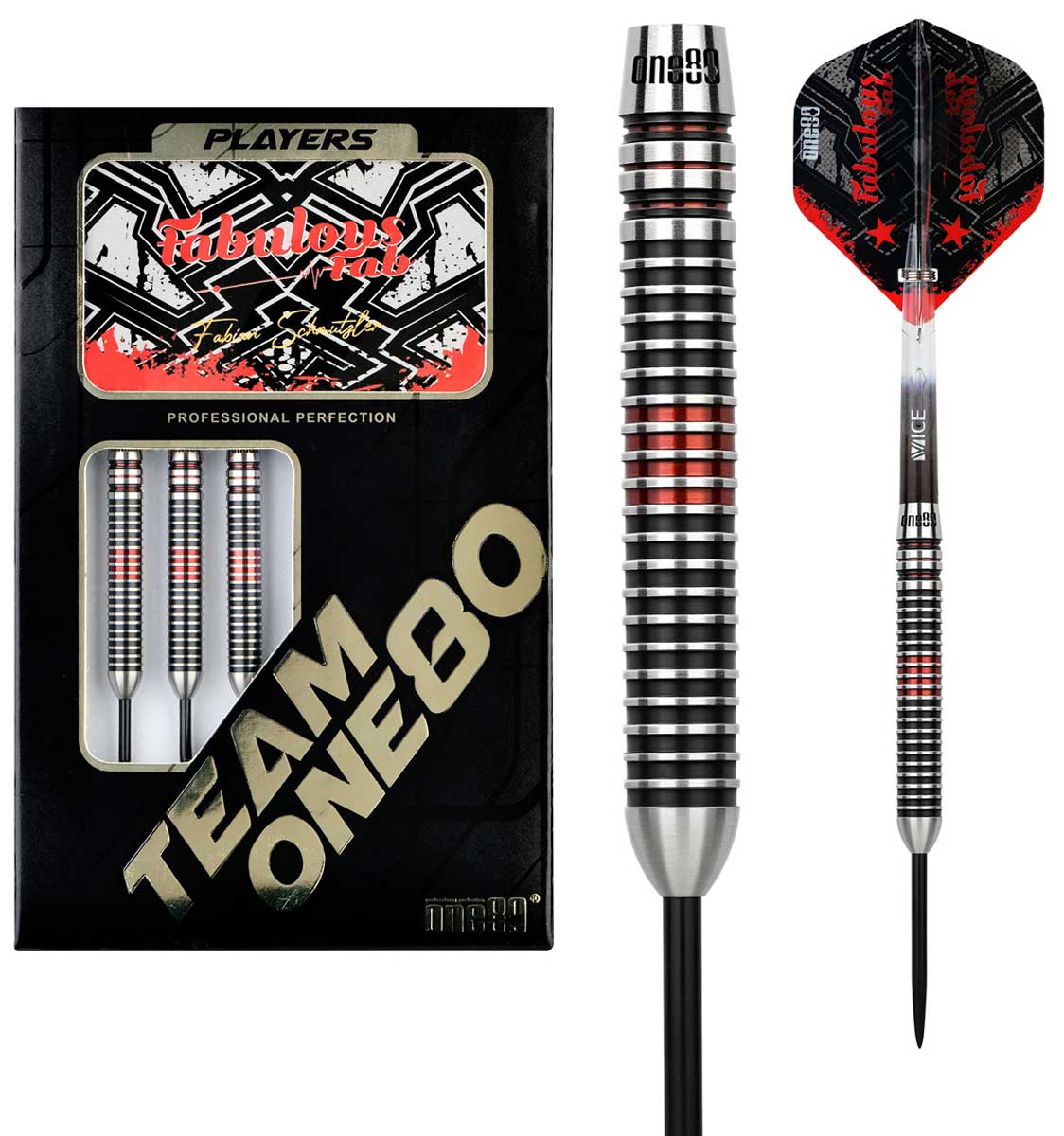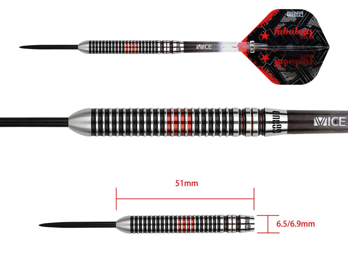 Als jüngster deutscher Spieler und als zweitjüngster überhaupt, hat Fabian sich für die PDC WM qualifiziert. Sein 90% VHD-Tungsten Dart hat durchgehende Rillen und eine schwarz/rote Eloxierung.Diesen Dart gibt es auch als Softdart.
