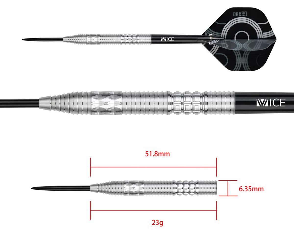 90% VHD Tungsten, 5 Grip-Zonen, davon 3 x Shark-Grip, breite Rillen und Diamond-Grip zeichnen diesen Dart aus.Diesen Dart gibt es nur in 23 Gramm.