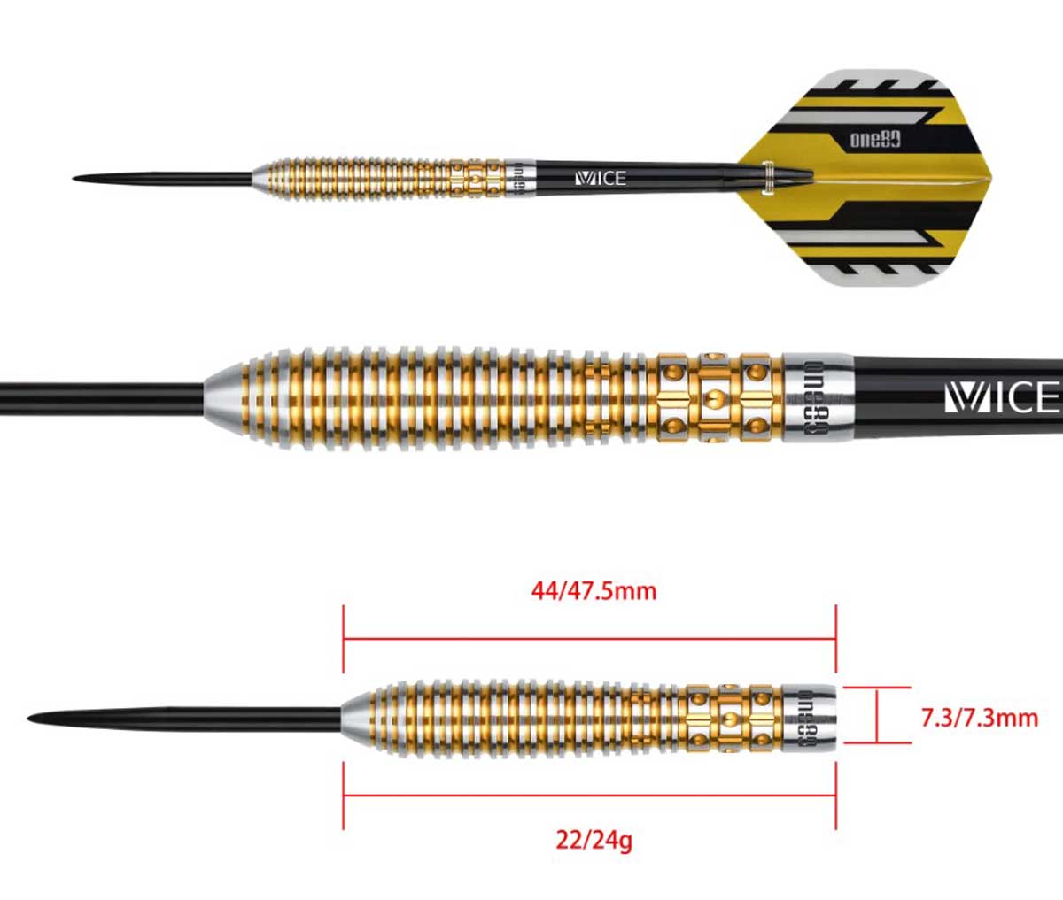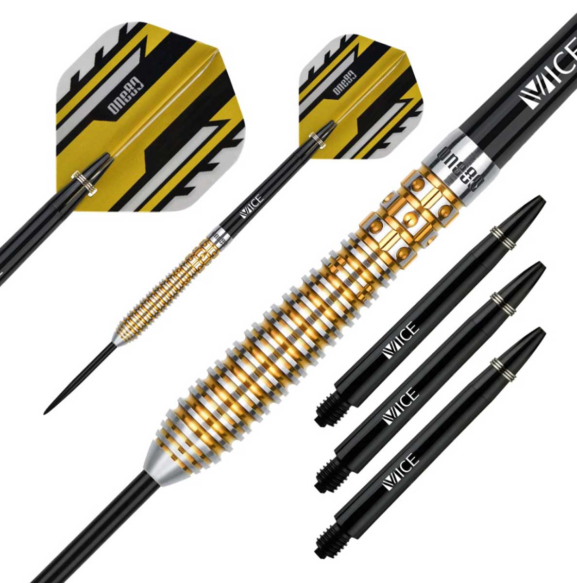Der torpedoförmige Dart ist leicht Frontlastig und hat durchgehend Doppelringe. Die innenliegende goldene Beschichtung macht den Dart auch optisch interessant. siehe Artikelbild.